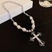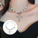 Vintage pärlhalsband korshängande nyckelbenskedja halsband