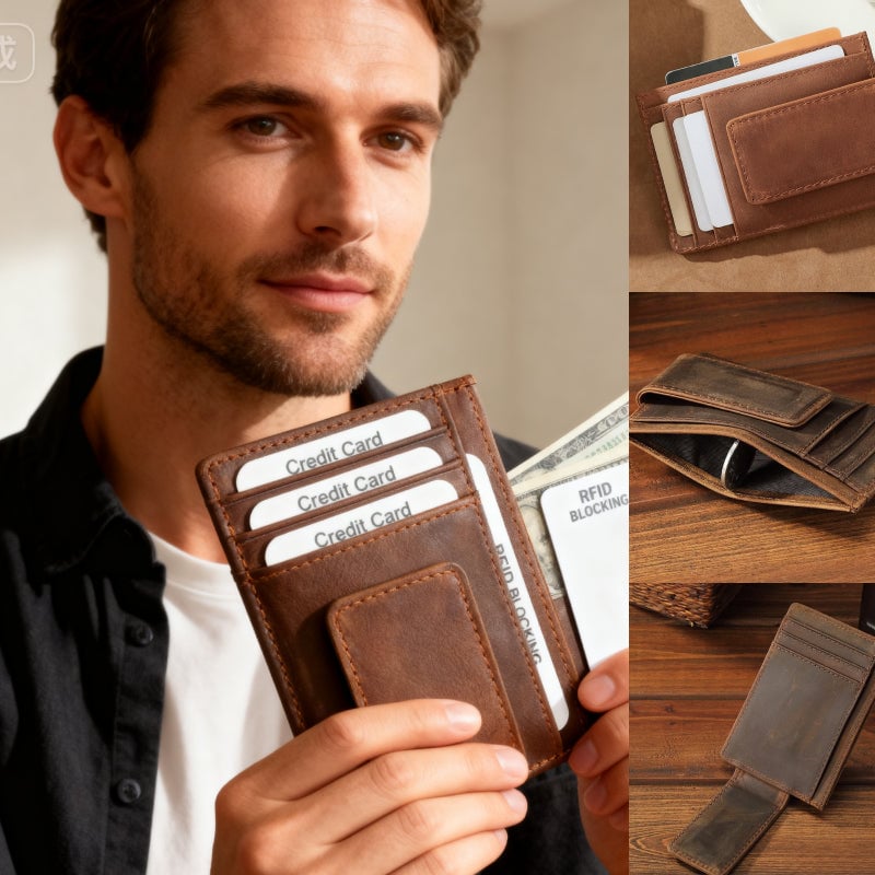 Anti-stöld Äkta Läder Multi-Kortfodral