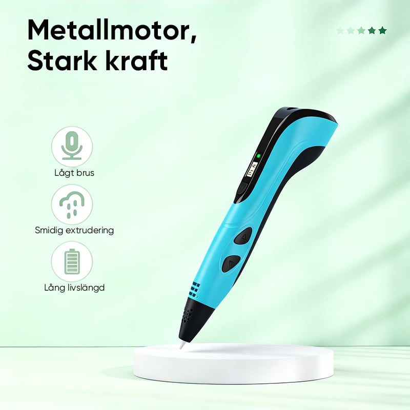 {"id":8383864078528,"title":"Barnens pedagogiska DIY-skapande 3D-ritningspenna","handle":"barnens-pedagogiska-diy-skapande-3d-ritningspenna","description":"\u003cp style=\"text-align: center;\"\u003e\u003cstrong\u003e3D-penn för barn – Kreativt DIY-ritverktyg med LCD-display och strömförsörjning\u003c\/strong\u003e\u003c\/p\u003e\n\u003cp style=\"text-align: center;\"\u003e\u003cimg src=\"https:\/\/cdn.myshopage.com\/c2026380-3962-4e64-3cdf-8d803510ac00.jpg\" alt=\"\"\u003e\u003c\/p\u003e\n\u003cp style=\"text-align: center;\"\u003e \u003c\/p\u003e\n\u003ch4\u003e\u003cspan style=\"color: #e67e23;\"\u003eEGENSKAPER\u003c\/span\u003e\u003c\/h4\u003e\n\u003cul\u003e\n\u003cli\u003e\n\u003cp\u003e\u003cstrong\u003eSäker och enkel att använda\u003c\/strong\u003e Denna 3D-penn är speciellt utvecklad för barn, enkel att använda och kräver ingen manual – barn kan enkelt pyssla med den hemma.\u003c\/p\u003e\n\u003c\/li\u003e\n\u003cli\u003e\n\u003cp\u003e\u003cstrong\u003eKraftfull metallväxelmotor\u003c\/strong\u003e Den hållbara metallväxelmotorn ger mer kraft, jämnare filamentutmatning, lågt ljud och lång livslängd.\u003c\/p\u003e\n\u003c\/li\u003e\n\u003cli\u003e\n\u003cp\u003e\u003cstrong\u003eUSB-C strömförsörjning\u003c\/strong\u003e Strömförsörjningen sker via USB-C-anslutning och säkerställer snabb uppvärmning och stabil prestanda vid långvarig användning. Anslut bara och börja!\u003c\/p\u003e\n\u003c\/li\u003e\n\u003c\/ul\u003e\n\u003cp style=\"text-align: center;\"\u003e\u003cimg src=\"https:\/\/cdn.myshopage.com\/b162e2ce-f3fa-4535-ab4d-240cdf66b600.jpg\" alt=\"\"\u003e\u003c\/p\u003e\n\u003cul\u003e\n\u003cli\u003e\n\u003cp\u003e\u003cstrong\u003eLätt och ergonomisk design\u003c\/strong\u003e\u003c\/p\u003e\n\u003cp\u003eDet förbättrade, kompakta höljet ligger bekvämt i handen, minskar trötthet och ger bättre kontroll för precisionsritning.\u003c\/p\u003e\n\u003c\/li\u003e\n\u003c\/ul\u003e\n\u003cp\u003e\u003cimg src=\"https:\/\/cdn.myshopage.com\/2c13141e-d0f6-4dab-a367-b4110a376d00.jpg\" alt=\"\"\u003e\u003c\/p\u003e\n\u003cul\u003e\n\u003cli\u003e\n\u003cp\u003e\u003cstrong\u003eLCD-display och inställbar hastighet\u003c\/strong\u003e Den inbyggda LCD-displayen visar temperatur- och lägesinställningar överskådligt. Tre inställbara hastighetsnivåer möjliggör olika kreativa effekter.\u003c\/p\u003e\n\u003c\/li\u003e\n\u003cli\u003e\n\u003cp\u003e\u003cstrong\u003eHälsosamt material\u003c\/strong\u003e Tillverkat av säkra och miljövänliga material för en icke-giftig, luktfri och barnvänlig målarupplevelse.\u003c\/p\u003e\n\u003c\/li\u003e\n\u003c\/ul\u003e\n\u003cp\u003e \u003c\/p\u003e\n\u003ch4\u003e\u003cspan style=\"color: #e67e23;\"\u003eSPECIFIKATIONER\u003c\/span\u003e\u003c\/h4\u003e\n\u003cul\u003e\n\u003cli\u003eMaterial: Metall\u003c\/li\u003e\n\u003cli\u003eLängd: 18 cm\u003c\/li\u003e\n\u003cli\u003eStrömförsörjning: USB-C\u003c\/li\u003e\n\u003cli\u003eTillgängliga färger: Rosa, Blå, Vit\u003c\/li\u003e\n\u003cli\u003eVikt: 200 g\u003c\/li\u003e\n\u003c\/ul\u003e\n\u003cp\u003e\u003cimg src=\"https:\/\/cdn.shopify.com\/s\/files\/1\/0554\/6406\/7257\/files\/468ef44610c31b5b50b747b4f9f5ee49_53000ddf-57c8-499a-afdb-9c0692f52194.jpg?v=1760510599\" alt=\"\"\u003e\u003c\/p\u003e\n\u003cp\u003e \u003c\/p\u003e\n\u003ch4\u003e\u003cspan style=\"color: #e67e23; font-size: 16px;\"\u003ePAKET INNEHÅLLER\u003c\/span\u003e\u003c\/h4\u003e\n\u003cul\u003e\n\u003cli\u003e1 × 3D-penn\u003c\/li\u003e\n\u003cli\u003e1 × Adapter\u003c\/li\u003e\n\u003cli\u003e1 × USB-C-laddningskabel\u003c\/li\u003e\n\u003cli\u003ePLA 10 färger * 5 m (totalt 50 meter)\u003c\/li\u003e\n\u003cli\u003e1 × Bruksanvisning\u003c\/li\u003e\n\u003cli\u003e1 × Färgkartongförpackning\u003c\/li\u003e\n\u003cli\u003e1 × Fingertopp\u003c\/li\u003e\n\u003cli\u003e1 × Bas\u003c\/li\u003e\n\u003cli\u003e1 × Spade\u003c\/li\u003e\n\u003cli\u003e1 × Ritbok + Ritplatta (22 mönster)\u003c\/li\u003e\n\u003c\/ul\u003e\n\u003cp\u003e \u003c\/p\u003e\n\u003ch4\u003e\u003cstrong\u003e\u003cspan style=\"color: #e67e23;\"\u003eANVÄNDNINGSSTEG\u003c\/span\u003e\u003c\/strong\u003e\u003c\/h4\u003e\n\u003col\u003e\n\u003cli\u003e\n\u003cp\u003e\u003cstrong\u003eStrömförsörjning: \u003c\/strong\u003e Sätt i USB-C-laddningskabeln. Lampan lyser rött under laddning och grönt när den är fulladdad.\u003c\/p\u003e\n\u003c\/li\u003e\n\u003cli\u003e\n\u003cp\u003e\u003cstrong\u003eVälj läge: \u003c\/strong\u003e Välj PLA- eller ABS-läge med \"M\"-knappen. Vänta tills den blå lampan lyser – pennan är nu redo för bruk.\u003c\/p\u003e\n\u003c\/li\u003e\n\u003cli\u003e\n\u003cp\u003e\u003cstrong\u003eMata in filament: \u003c\/strong\u003e För in filamento i matningsöppningen och tryck på \"Feed\"-knappen för att starta inmatningen.\u003c\/p\u003e\n\u003c\/li\u003e\n\u003cli\u003e\n\u003cp\u003e\u003cstrong\u003eBörja rita: \u003c\/strong\u003e Tryck på \"Feed\"-knappen för att extrudera filament och börja rita.\u003c\/p\u003e\n\u003c\/li\u003e\n\u003cli\u003e\n\u003cp\u003e\u003cstrong\u003eTa ut filament: \u003c\/strong\u003e Tryck på \"Return\"-knappen för att automatiskt dra tillbaka materialet.\u003c\/p\u003e\n\u003c\/li\u003e\n\u003cli\u003e\n\u003cp\u003e\u003cstrong\u003eJustera hastighet: \u003c\/strong\u003e Tryck på \"M\"-knappen under drift för att växla mellan olika hastighetsnivåer.\u003c\/p\u003e\n\u003c\/li\u003e\n\u003c\/ol\u003e\n\u003cp\u003e \u003c\/p\u003e\n\u003cp\u003e\u003cimg src=\"https:\/\/cdn.myshopage.com\/5595a756-43bf-4946-ec9d-2307a1ff2200.jpg\" alt=\"\"\u003e\u003c\/p\u003e\n\u003cp\u003e \u003c\/p\u003e\n\u003ch4\u003e\u003cspan style=\"color: #e67e23; font-size: 16px;\"\u003eOBS\u003c\/span\u003e\u003c\/h4\u003e\n\u003cul\u003e\n\u003cli\u003eVar god ta hänsyn till små mätavvikelser på grund av manuell mätning.\u003c\/li\u003e\n\u003cli\u003ePå grund av olika skärm- och ljuseffekter kan art