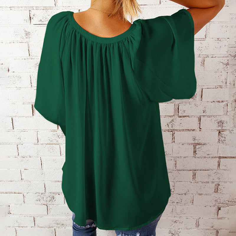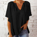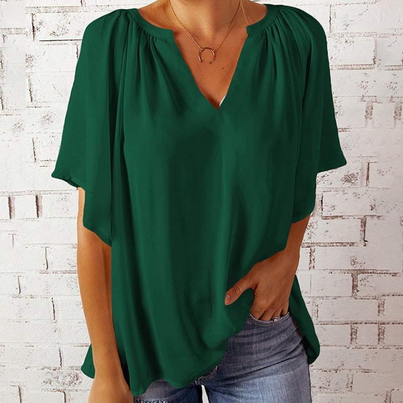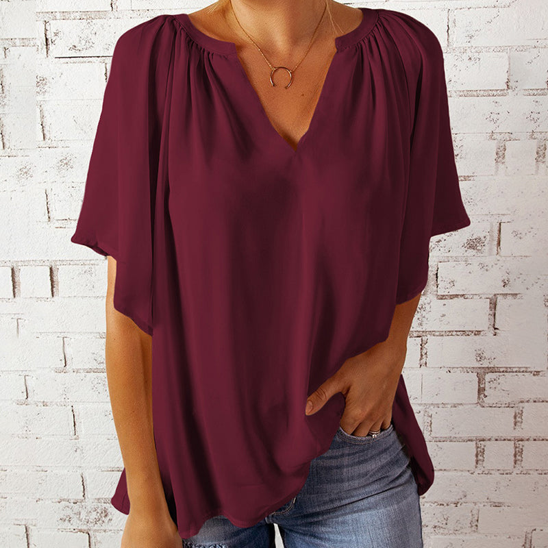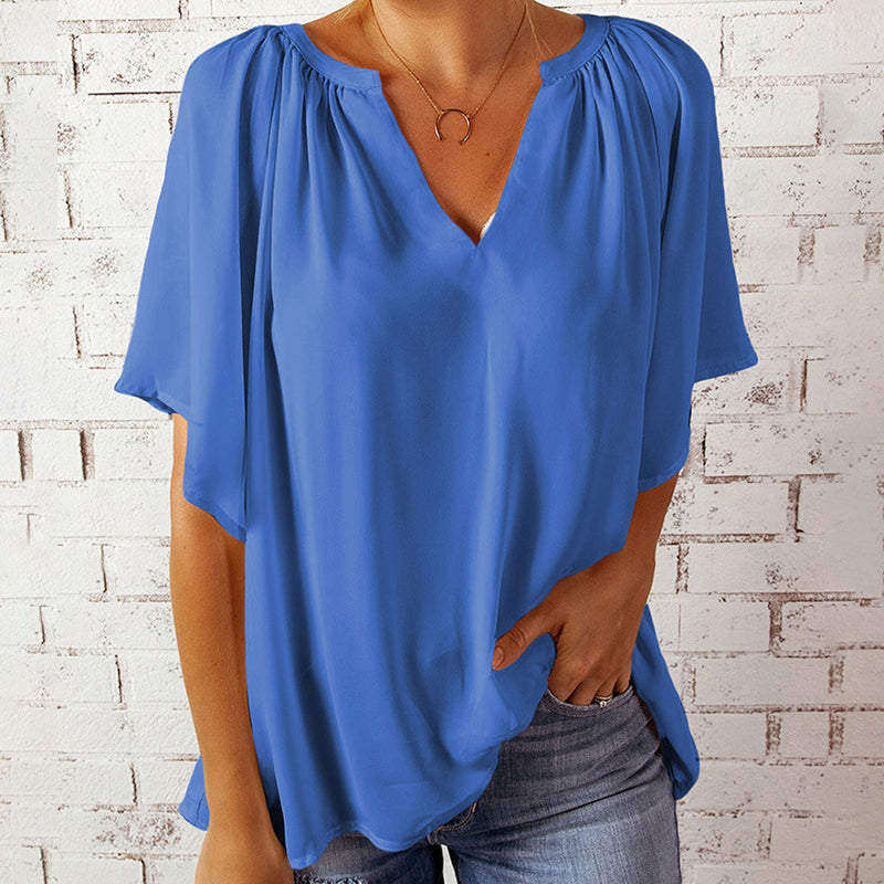 V-ringad halvärm enfärgad blus