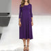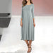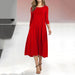 Kvinnors nya mid-sleeve enfärgad svängklänning