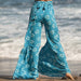 Blommiga avslappnade spetsbyxor med vida ben