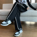 Damrandiga byxor med vida ben