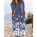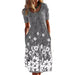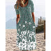 Blommig klänning med kort ärm och rund hals