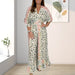 Geometriska flertrycks V-ringad Kimono Jumpsuits