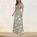 Växtleenden tryckt på axeln Elastisk midja Maxiklänning