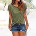 Enfärgad kortärmad frans-T-shirt med rund hals