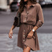 Elegant Enfärgad Slit Skjortklänning
