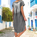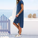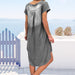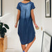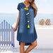 V-ringad denimklänning med kort ärm