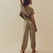 Enfärgad stickad tvådelad uppsättning för kvinnor