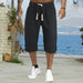Sommar mäns casual enfärgade cropped byxor