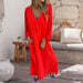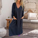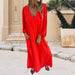 Förköp>Löst sittande V-ringad enfärgad klänning med lanterninärm