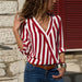 Långärmad randig skjorta med V-ringad hals