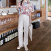 Topp med trekvart arm med blonder og U-hals