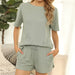 Enfärgad kortärmad sommar-t-shirt med rund hals