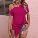 Enfärgad kortärmad sommar-t-shirt med rund hals