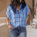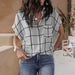 V-ringad skjorta med rutigt tryck
