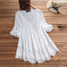 Topp med trekvart arm med blonder og U-hals