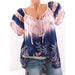 V-ringad blus med kort ärm i spets