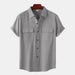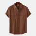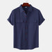 Enfärgad casual kortärmad skjorta i bomullslinne för män