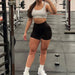 Höfthöjande, veckade fitnessyogashorts med hög midja