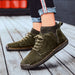 Handsydda, andningsbara läderskor med mjuk yta och senesula