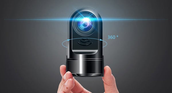 Har en lins som kan rotera 360 grader, vilket ger mångsidiga inspelningsvinklar och täckning av omgivningen.