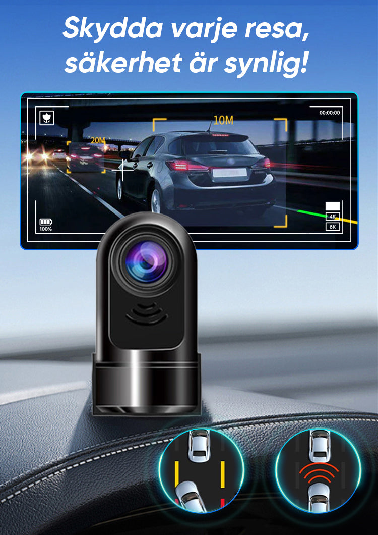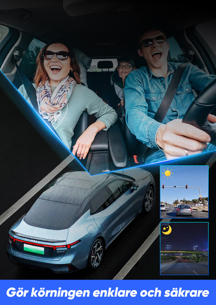 Erbjuder högupplöst videoinspelning i 1080P, vilket säkerställer klart och detaljerat videomaterial av vägen framför.