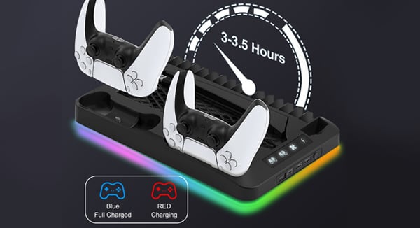Det här stativet håller min PS5 sval, laddar mina kontroller och ser fantastisk ut med RGB-lamporna. Älskar den extra förvaringen för spel och tillbehör. Rekommenderar varmt!