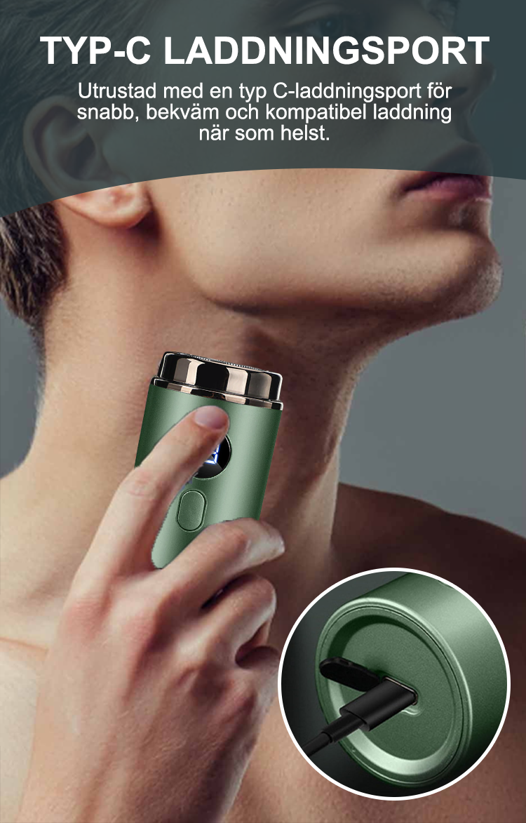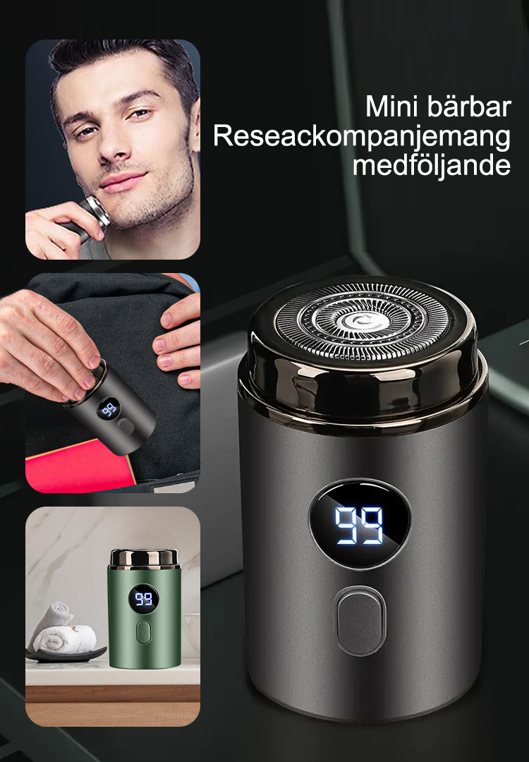 Den här rakapparaten är otroligt kompakt; den tar nästan ingen plats i väskan och är perfekt att ha med sig. Oavsett om det gäller affärsresor eller resor ryms den lätt i fickan och är redo att användas när som helst.