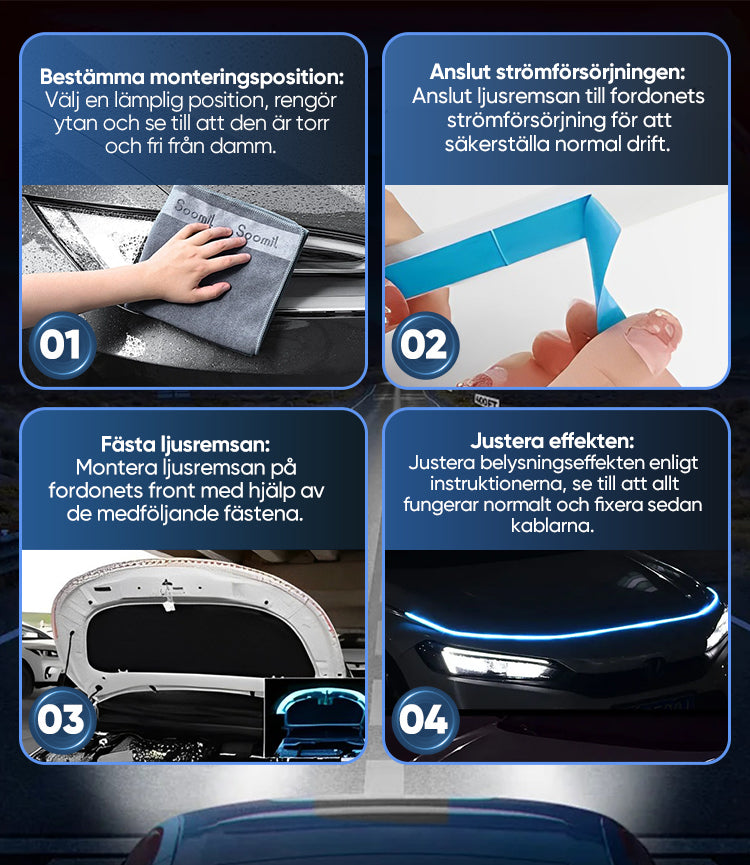 Denna lampa överträffade mina förväntningar! Den genomgående effekten gör bilens front mer distinkt, märkbar under dagen och ännu charmigare på natten. Installationen var mycket enkel - rekommenderar det starkt till alla som vill uppgradera sina billjus.