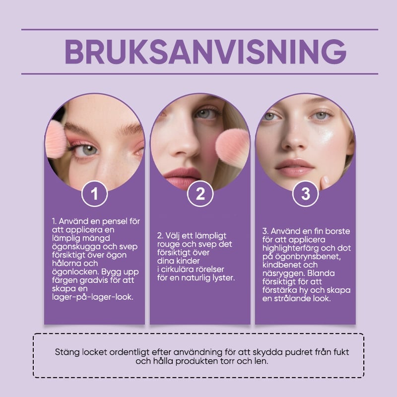 Allt-i-ett-palett för highlighter, ögonskugga och rouge